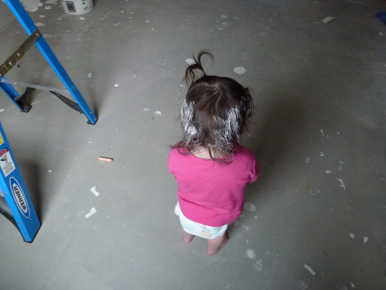 The boys helped Derek work on Easton's room downstairs. They are taping it. I think it is time for the boys to have their separate space, for my sake!! Peyton must have thought the mud looked like hair gel. Silly girl!!
